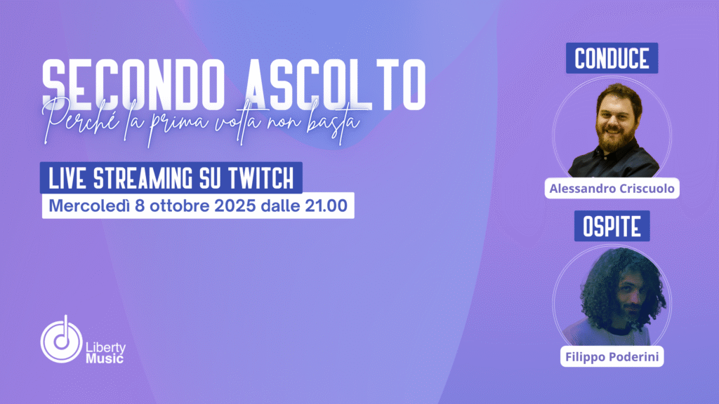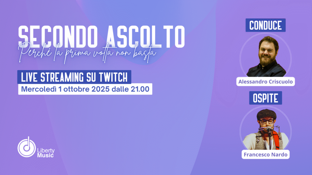 Mercoledì 8 ottobre si è tenuta la venticinquesima puntata di “Secondo Ascolto“, il podcast settimanale di Liberty Music condotto da Alessandro Criscuolo, in diretta sul canale Twitch ufficiale. Prosegue così la seconda stagione del format, con una puntata densa di spunti, riflessioni e consigli pratici, pensati soprattutto per chi fa musica oggi e vuole capire […]